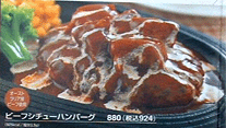 Grillグリル ↑地鶏ステーキ醤油ガーリックソース 924円 ↑てりやきチキン&ホタテのグリル 819円 ↑ハンバーグ&ホタテ6えびフライ 819円 ↑チキンステーキトマトガーリック 609円 ↑イタリアンハンバーグステーキ 714円 ↑ビーフリブステーキ 1029円 ↑ビーフシチューハンバーグ 924円 ↑ほたての海鮮醤油&えびフライ 924円